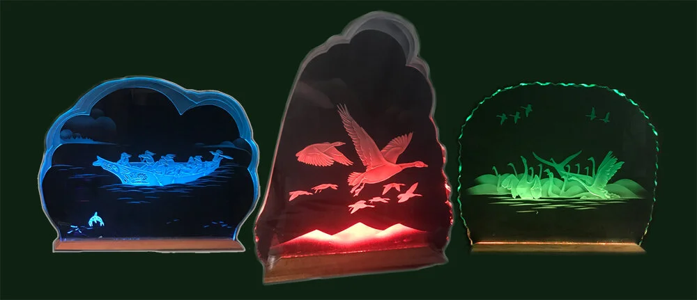 Room dividers are different from Moodlights in that they are placed against a wall on a solid shelf and the LED lights have to be built into the location, so if you are interested in an illuminated divider, the LED lights will not be included in the price. They will be your own responsibility, but I will be happy to provide whatever help I can for no extra cost.